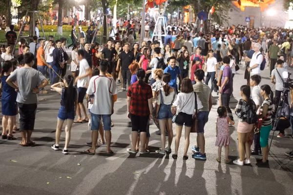 Đúng 19h ngày 1/9, 15 tuyến phố xung quanh khu vực hồ Hoàn Kiếm (Hà Nội) đã đồng loạt được thí điểm không gian đi bộ, các lực lượng chức năng sử dụng rào chắn để các phương tiện không đi vào phố cấm.