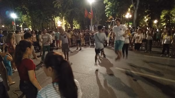 (Kiến Thức) - Nhiều người dân Hà Nội tỏ ra hào hứng, thích thú vui chơi, một số người còn ngồi thoải mái lăn lê trên phố đi bộ để trải nghiệm không gian rộng rãi.