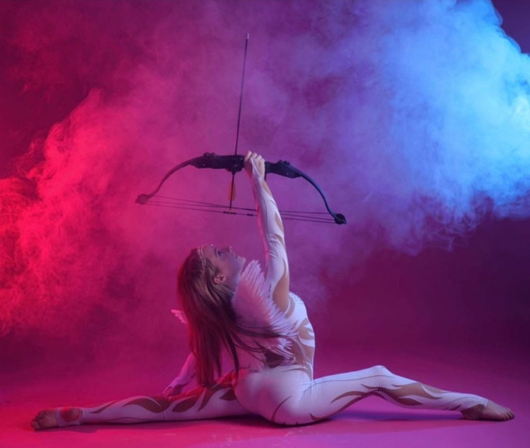 Orissa Kelly thực hiện nhiều bộ ảnh nghệ thuật nhờ khả năng uốn dẻo và bắn cung bằng chân.
