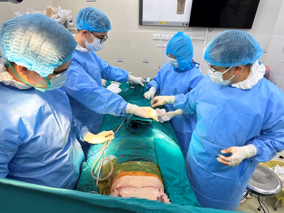 Ca phẫu thuật diễn ra hơn 7 giờ đồng hồ. Kíp phẫu thuật từ Bệnh viện Đại học Y Hà Nội gồm nhiều y bác sĩ đã phối hợp nhịp nhàng, ăn ý các kỹ thuật khó để lấy các hạt silicon ra khỏi vùng ngực bệnh nhân, sau đó tiến hành tạo hình vùng ngực.