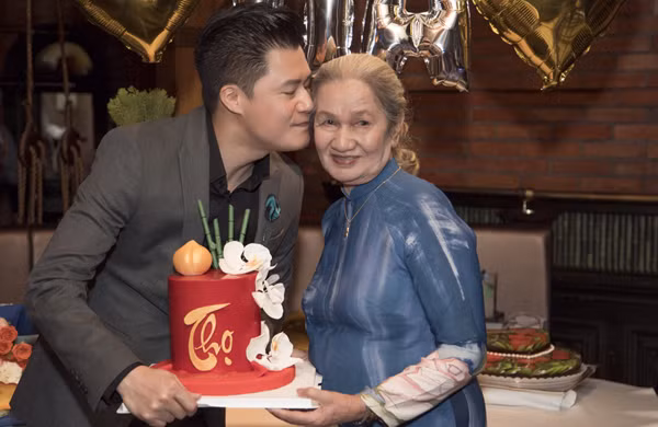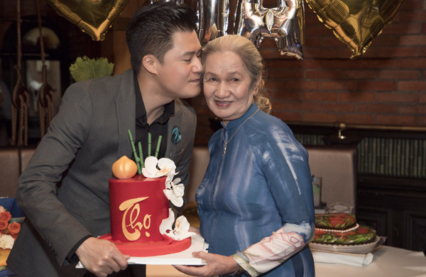 Quang Dũng và mẹ trong dịp sinh nhật tròn 80 của bà.