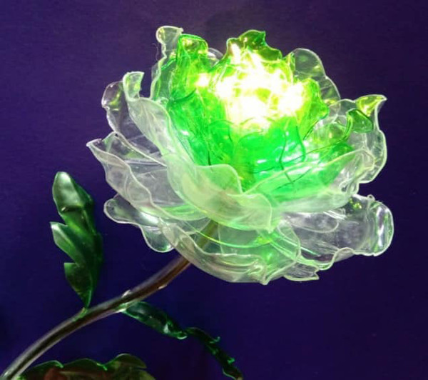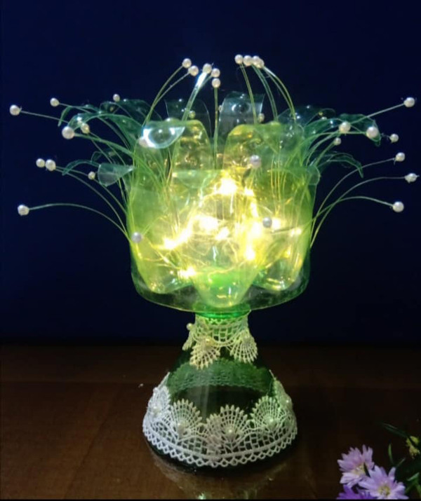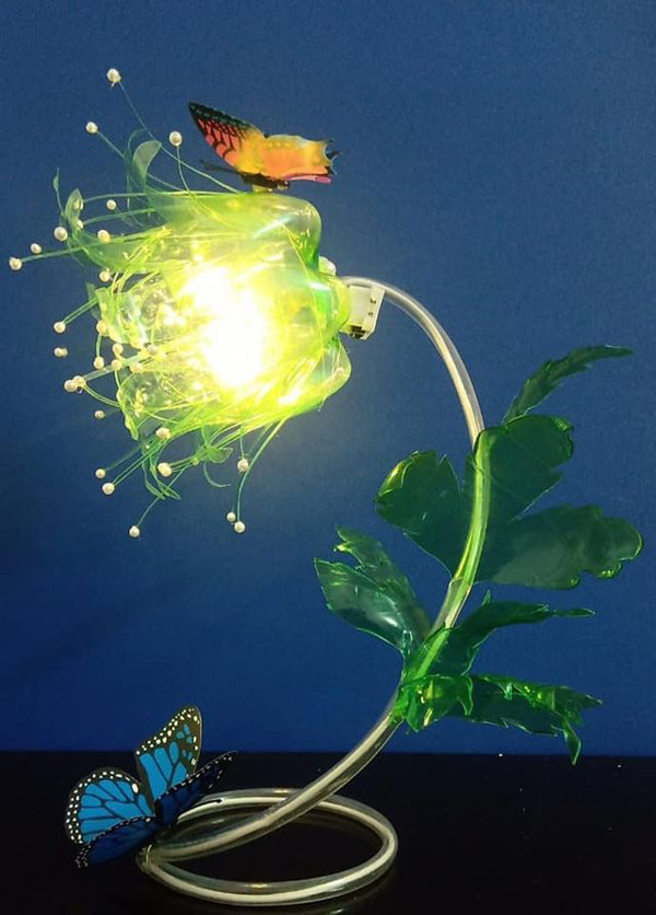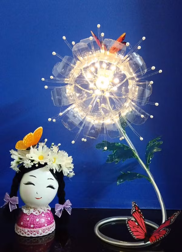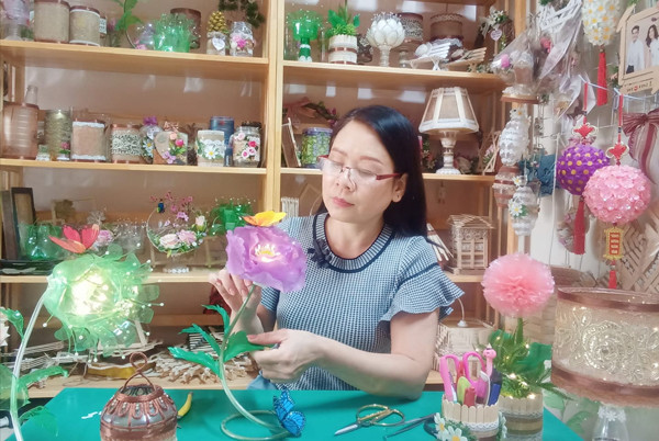 Chị Hoa tái chế chai, lọ nhựa thành các sản phẩm đèn ngủ, hoa...