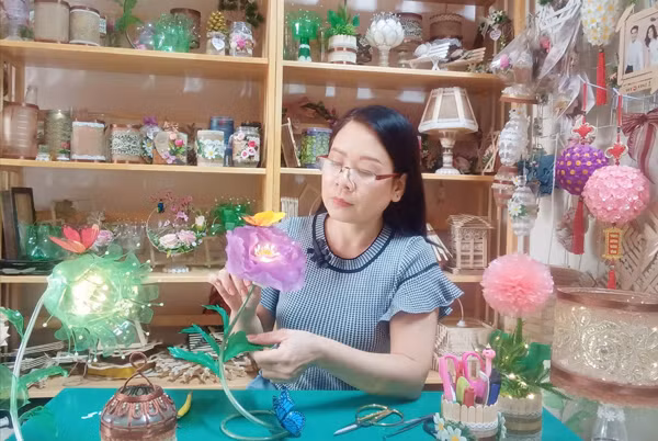Ngoài việc sáng tạo các sản phẩm, thời gian gần đây, chị cũng mở một số lớp hướng dẫn những người có cùng đam mê tái chế các sản phẩm từ rác. Nhờ vậy, mỗi tháng, chị có thu nhập khoảng chục triệu đồng.