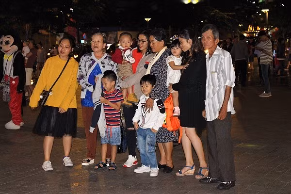 Cả gia đình cùng nhau đi dạo phố, tận hưởng thời tiết se lạnh như mùa thu ở miền Bắc.