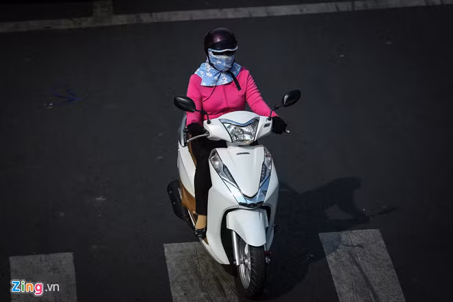 Cảnh người đi xe máy trùm kín từ đầu tới chân ở Sài Gòn
