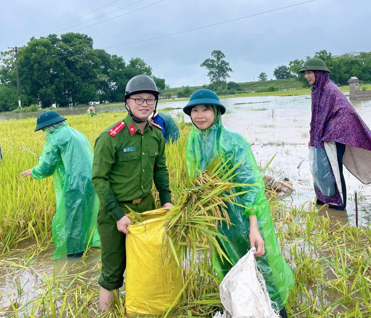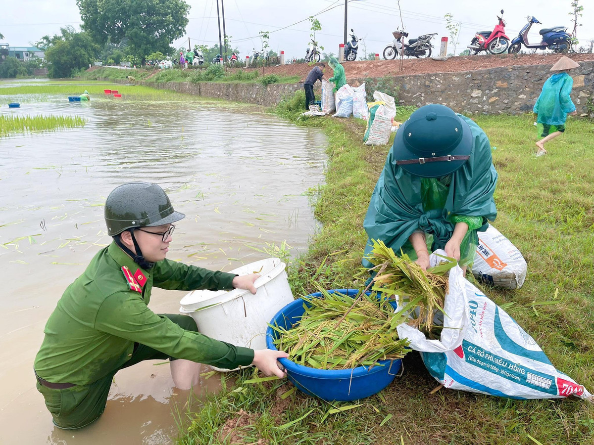Sau những trận mưa lớn kéo dài nhiều ngày liên tiếp, lực lượng Công an xã đã cùng các đơn vị khẩn trương xuống đồng cùng bà con cứu lúa.