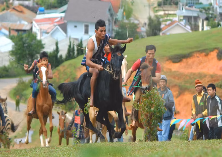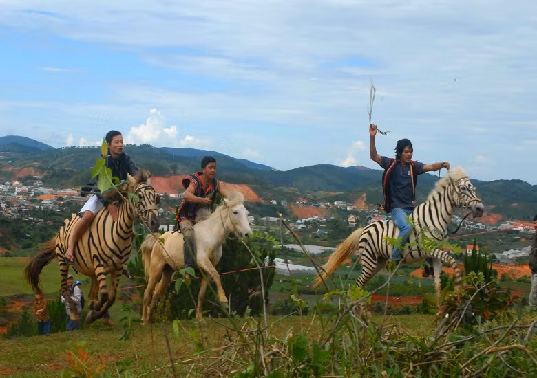 | Sau hiệu lệnh các kỵ sĩ thúc ngựa băng băng phi trên thảo nguyên Langbiang. |