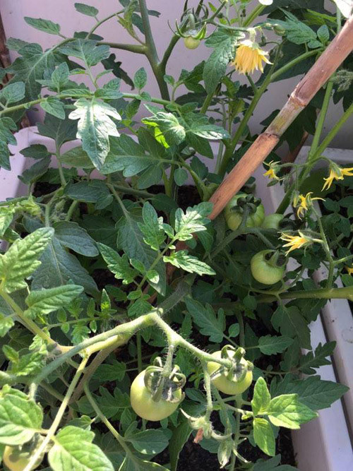 | Một góc vườn trồng cà chua và rau gia vị. |