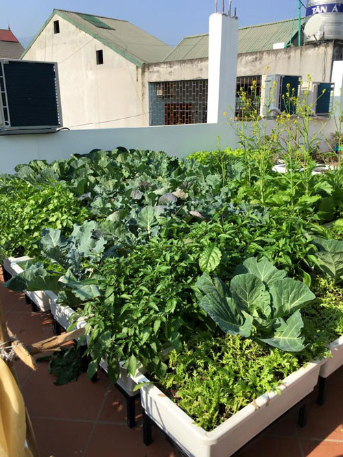 Vườn rau trên sân thượng rộng 45m vuông của gia đình chị Hương