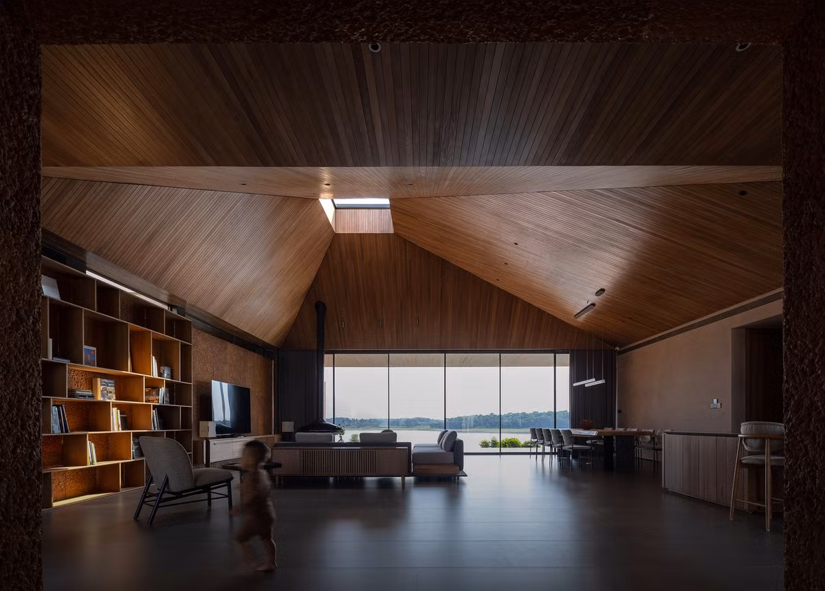 Ngôi nhà hướng ra hồ để tối đa hóa số lượng không gian với tầm nhìn ra cảnh quan tuyệt đẹp.