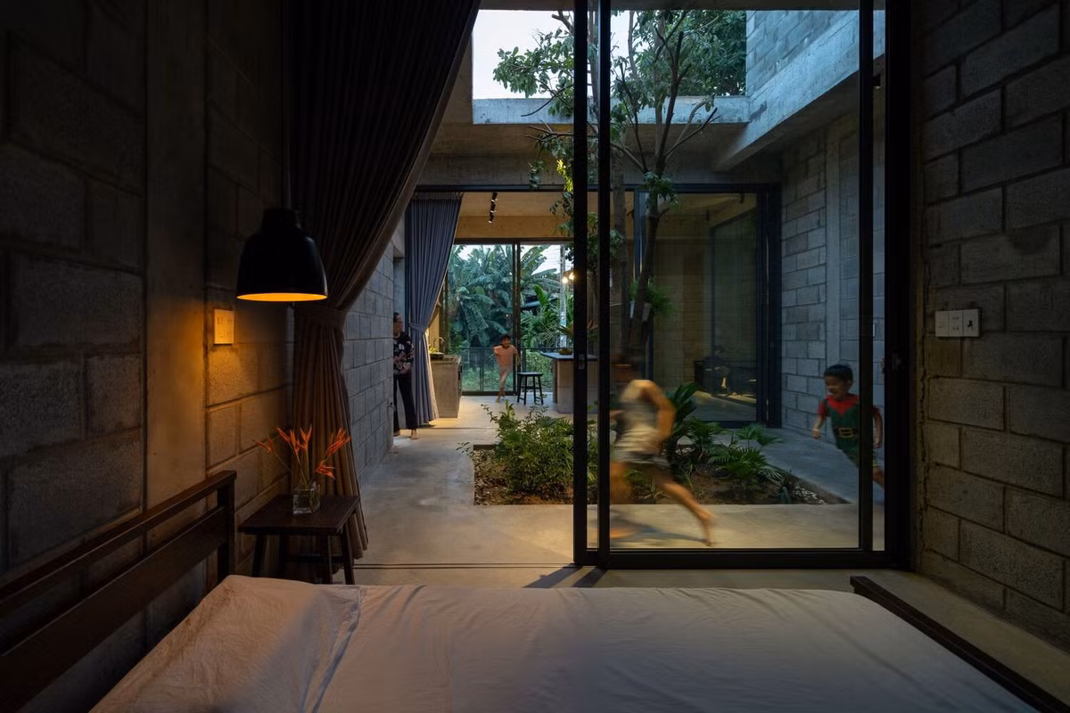 Ngôi nhà cấp 4 mang kiến trức bền vững sử dụng khối bê tông chưa hoàn thiện cho hầu hết các bức tường làm tăng vẻ đẹp mộc mạc của ngôi nhà đồng thời là lựa chọn vật liệu có ý thức về môi trường.