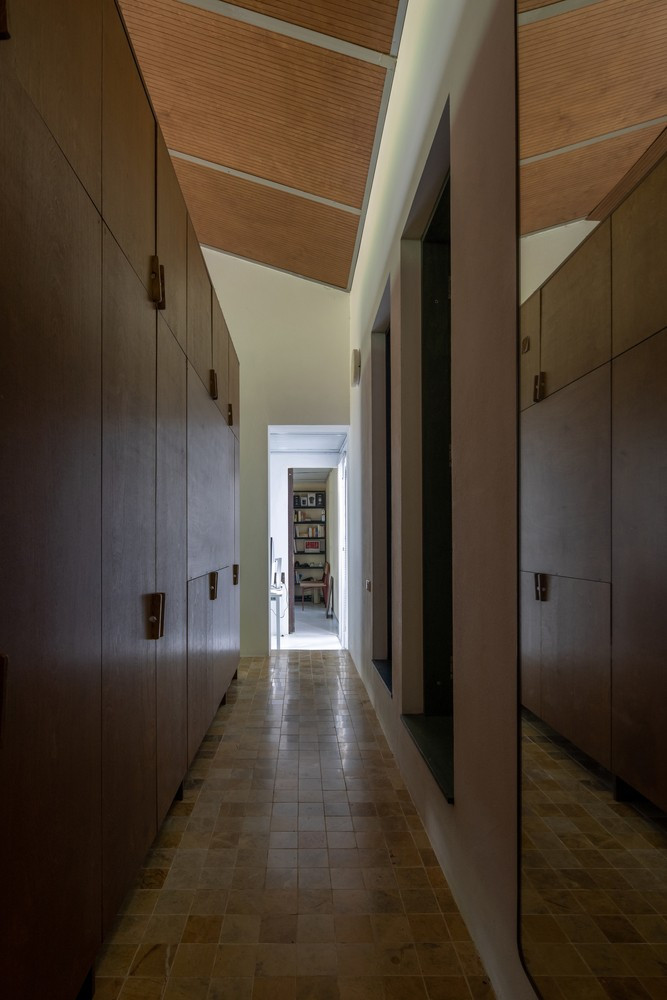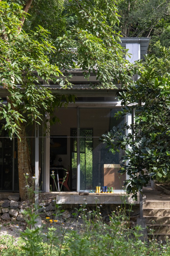 Ngôi nhà cũ được bảo tồn, với không gian sống mở rộng về phía đông bắc, gần một cái ao. Các lối đi bên trong được thiết kế để tránh những cây hiện có, sử dụng gạch liên kết chứa đầy cát để đảm bảo thoát nước tự nhiên.