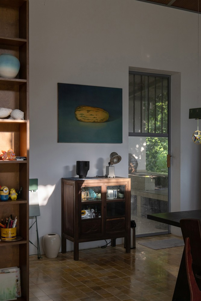 Ngôi nhà cũ được cải tạo thành không gian làm việc. Khu vực sinh hoạt chung đóng vai trò là trái tim của ngôi nhà, thực hiện các chức năng chính như thư giãn, xem phim, nấu ăn và nuôi dưỡng mối quan hệ gia đình.