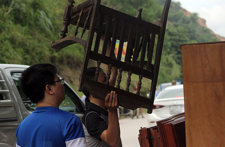 Các hộ gia đình khác cũng khẩn trương di dời tài sản ra ngoài để vận chuyển đến nơi an toàn.