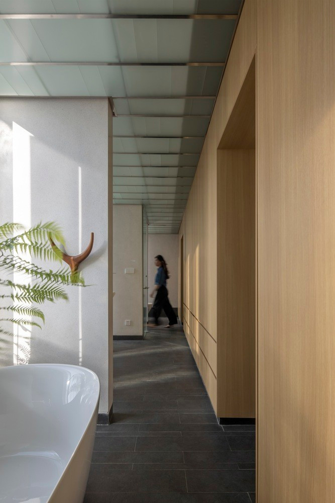 Thiết kế này loại bỏ ranh giới truyền thống của các tầng riêng biệt, giúp di chuyển theo chiều dọc dễ dàng đồng thời tăng cường trải nghiệm tổng thể về sự rộng rãi. Việc đưa các loại cây bản địa, và một khu vườn hướng Đông Nam phía trên khu vực sinh hoạt và bếp, giúp điều chỉnh nhiệt độ và tích hợp thiên nhiên vào trải nghiệm sống hàng ngày.