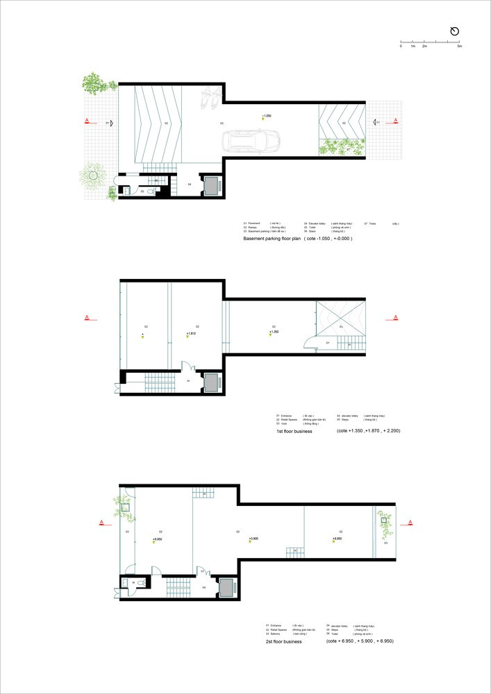 Kiến trúc chính xoay quanh thiết kế sàn so le, trong đó các chiều cao sàn khác nhau tạo ra sự kết nối trực quan liền mạch giữa các tầng. Điều này thúc đẩy cảm giác cởi mở, tối ưu hóa ánh sáng tự nhiên và thông gió.