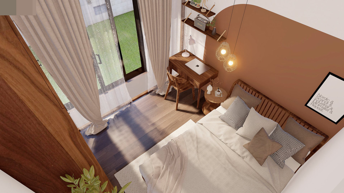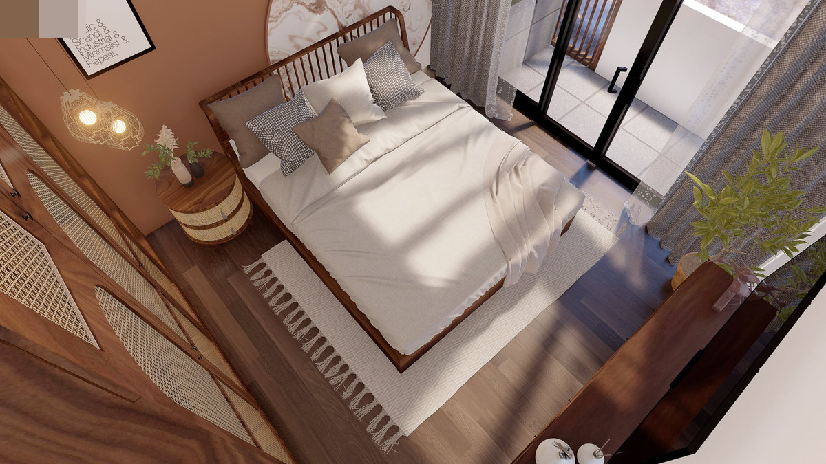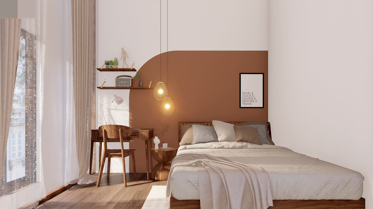 Phòng ngủ được phối màu tươi mới, nhẹ nhàng đem đến cho bạn cảm giác thư giãn thoải mái.