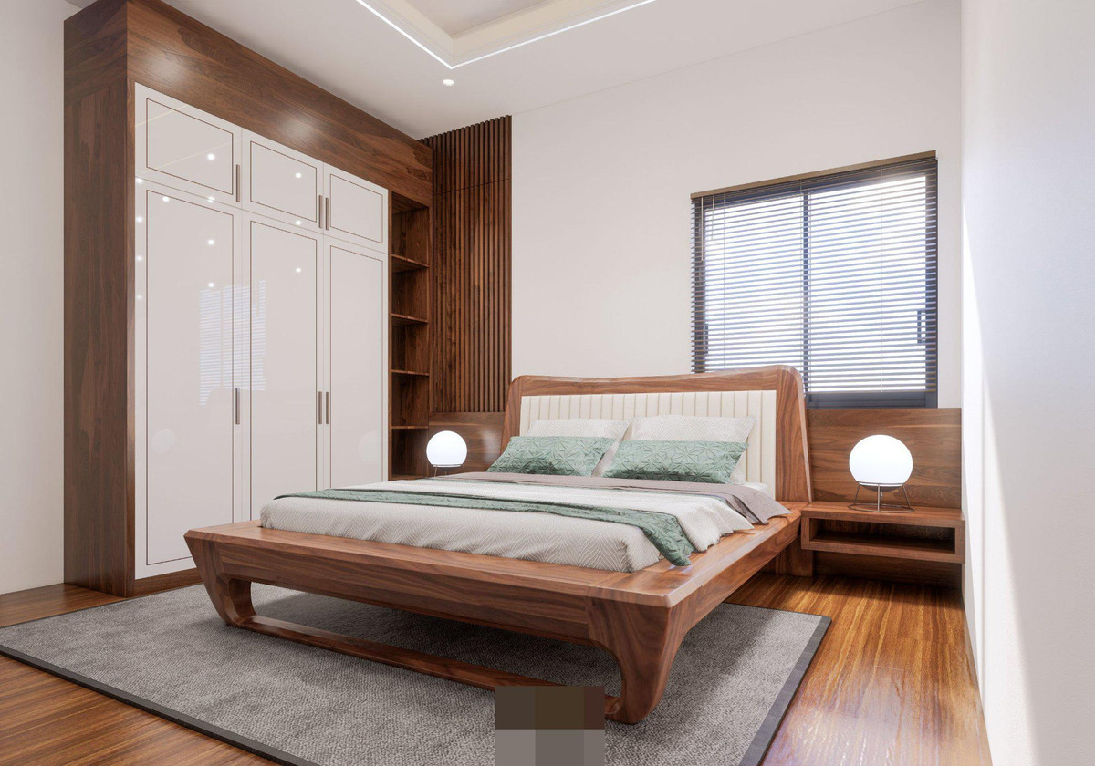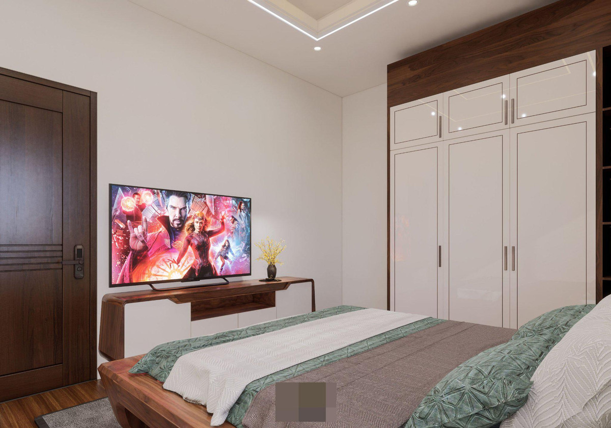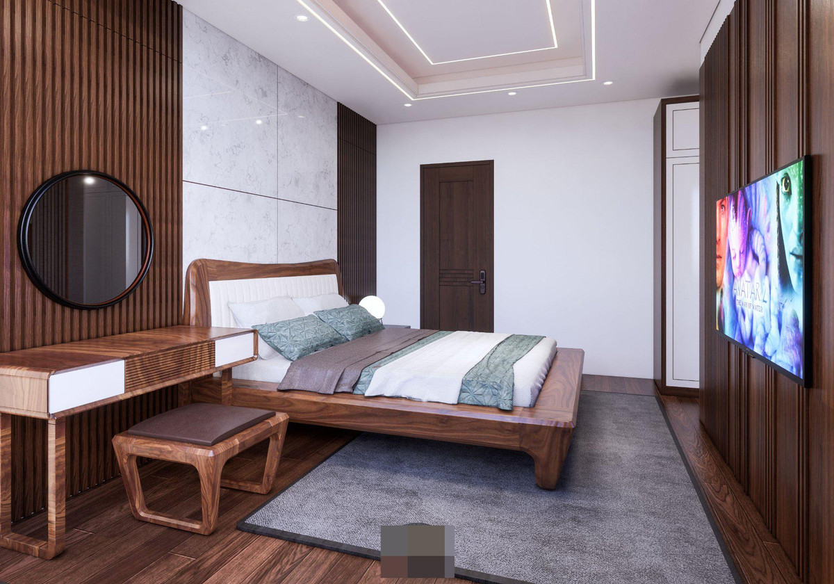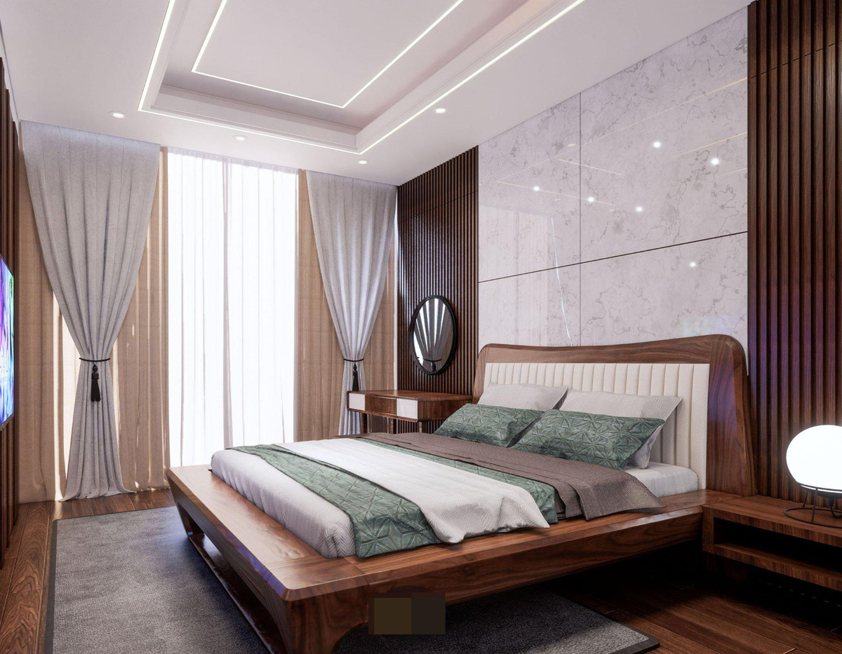 Phòng ngủ master rộng rãi, thiết kế bắt mắt, ấn tượng.