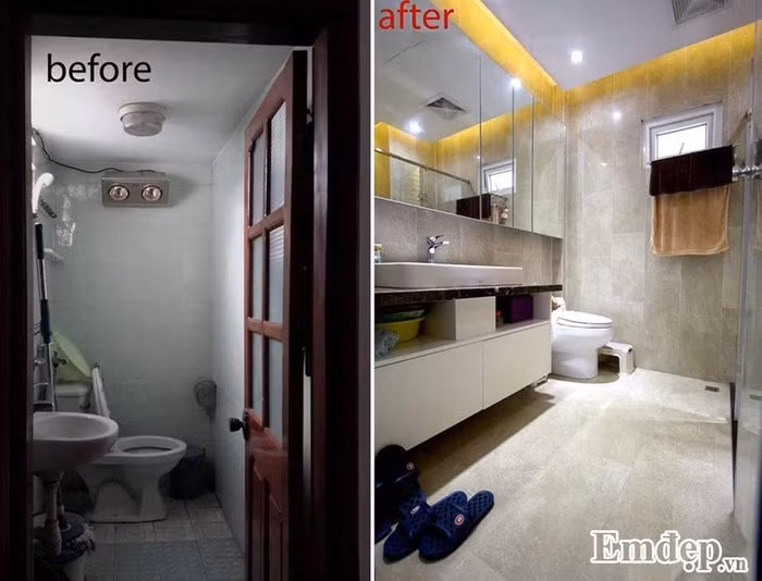 Sau khi được KTS tư vấn, thiết kế lại phòng ngủ trước đây như được lột xác. Thay vì sàn đá hoa cổ kính đã được lát sàn gỗ sang trọng. Giường ngủ và nội thất lấy tông màu be vàng là chủ đạo tạo sự ấm áp.