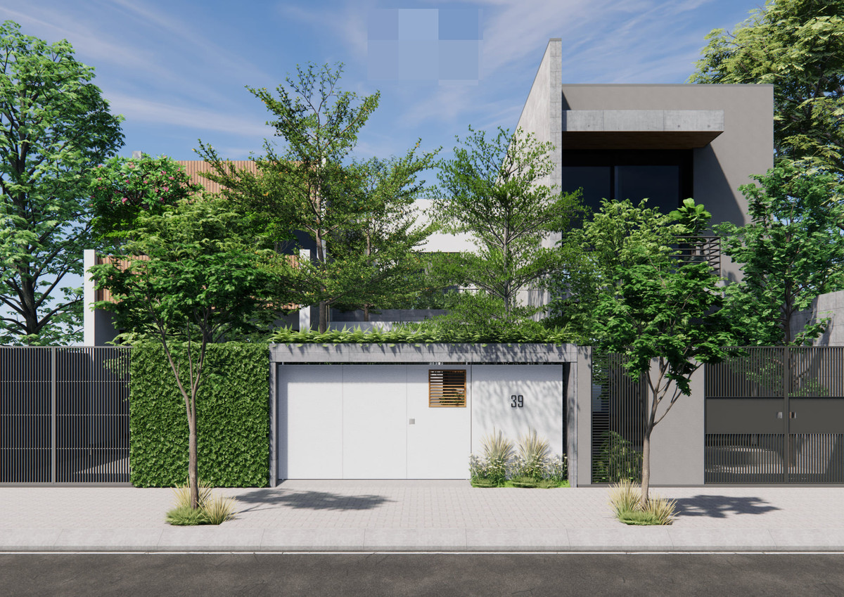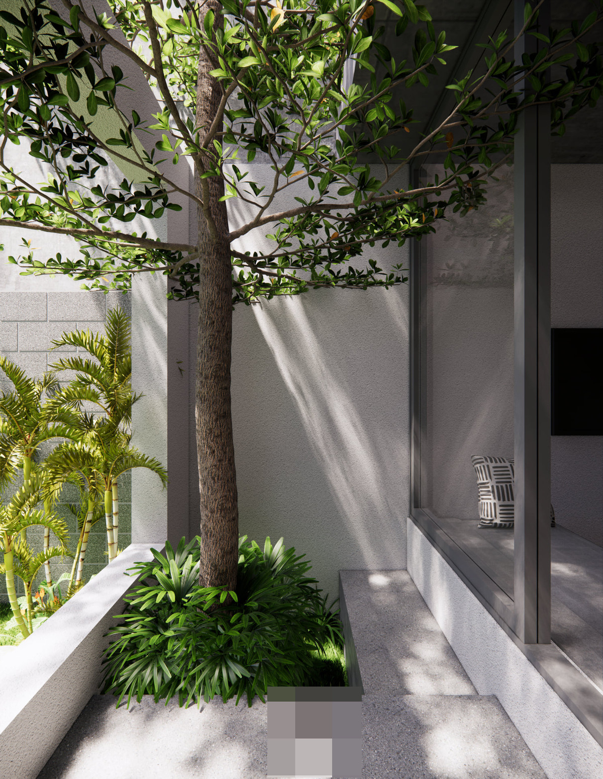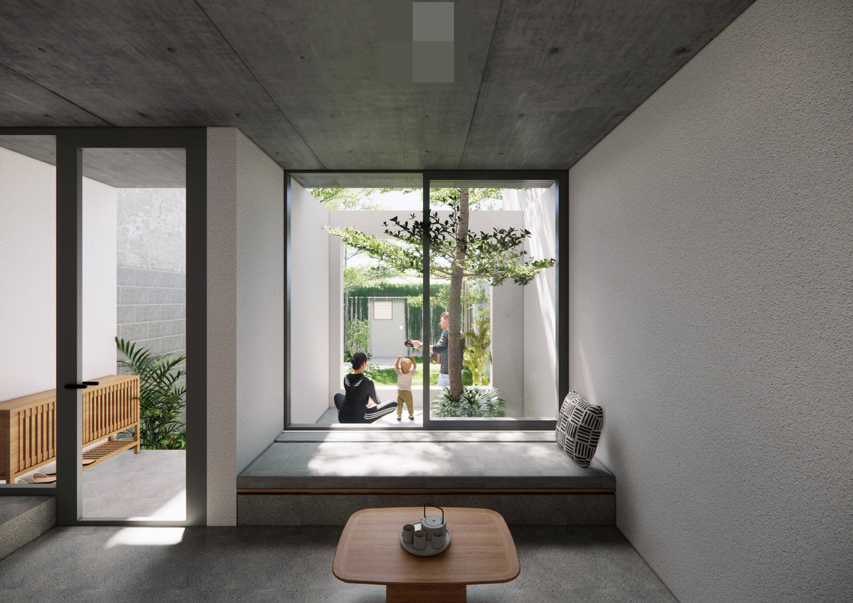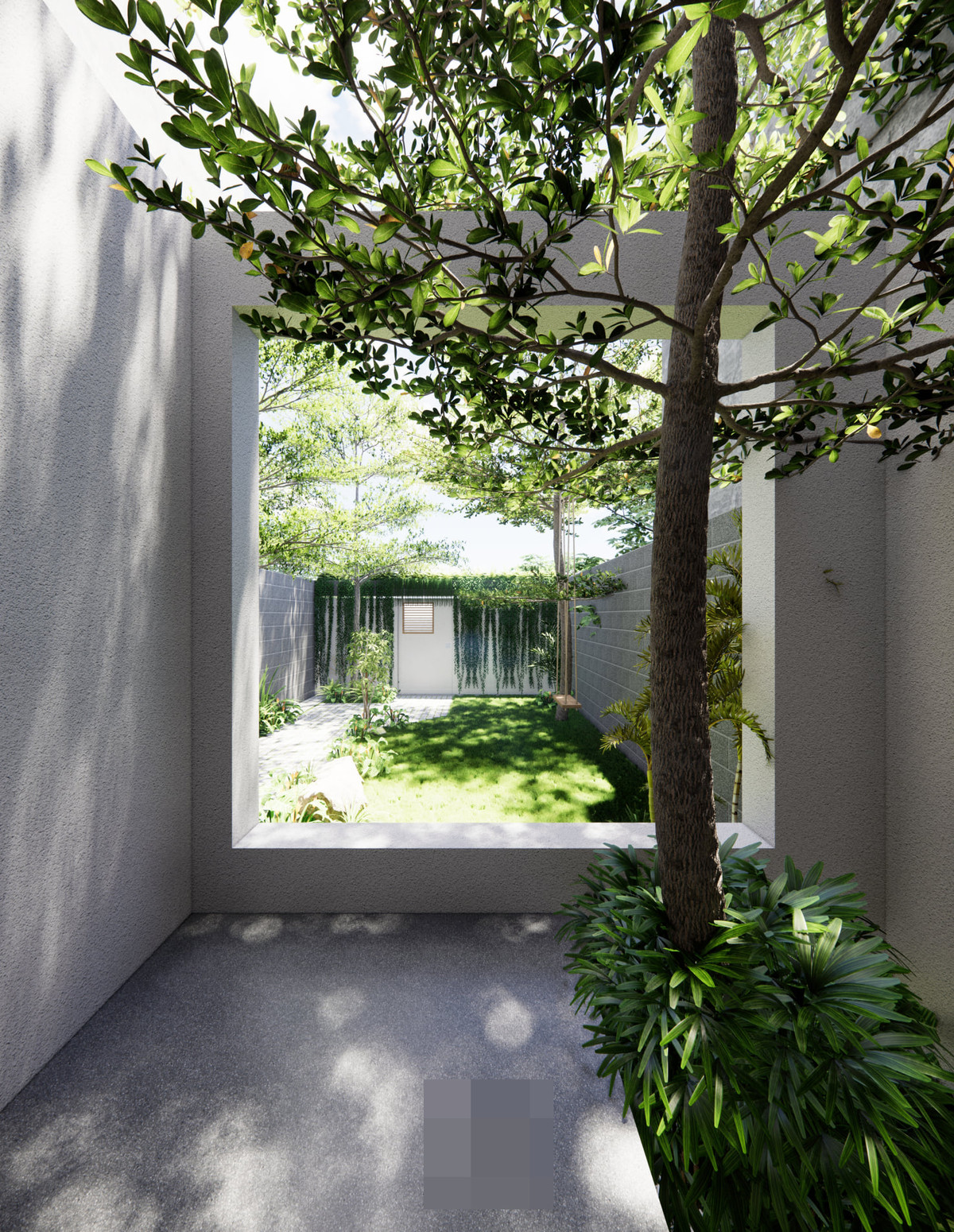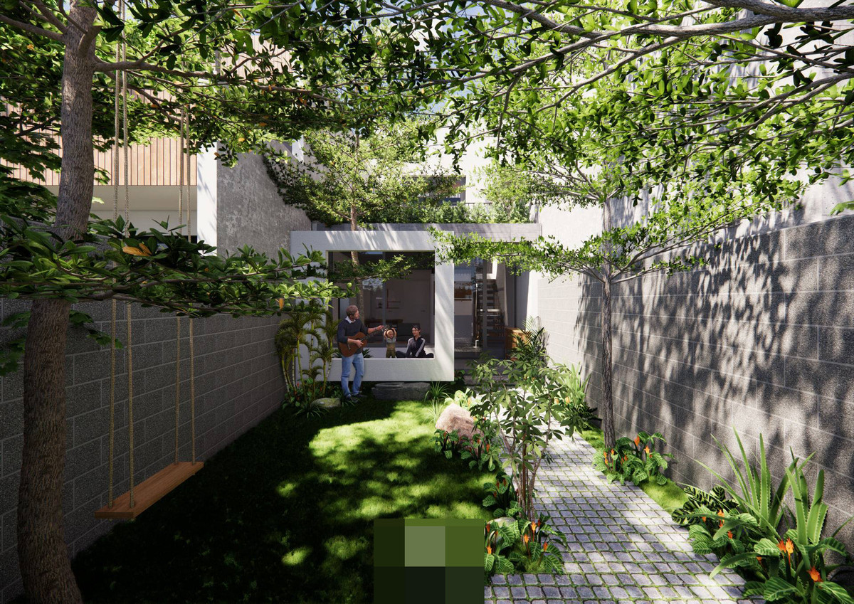 Kiến trúc sư không xây hết phần đất mà chừa lại nhiều khoảng để trồng cây. "Ngày trước, mọi người thường có quan điểm phải xây nhà rộng, to, hết phần đất để phục vụ chuyện ở. Tuy nhiên, ngày nay bên cạnh không gian ở, mọi người đã chú trọng đến sân vườn và cảnh quan", kiến trúc sư Minh Tín nói.