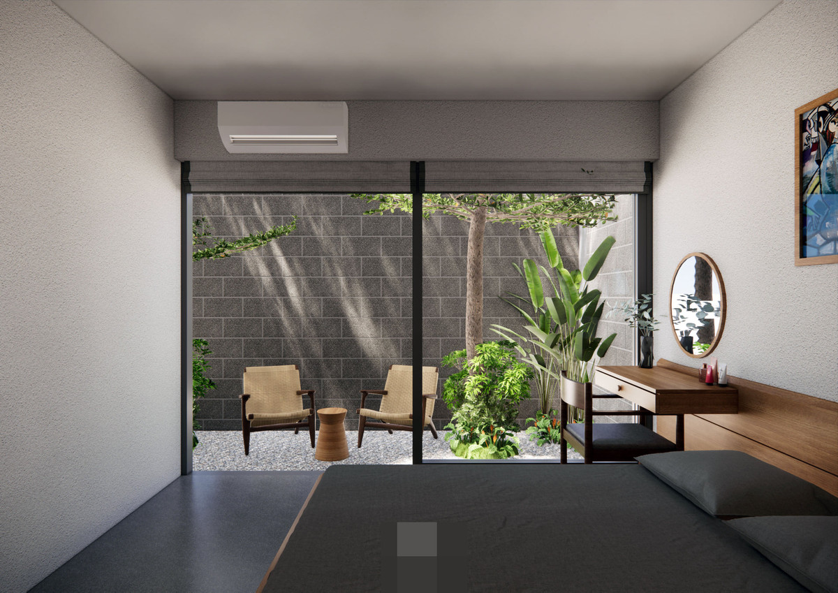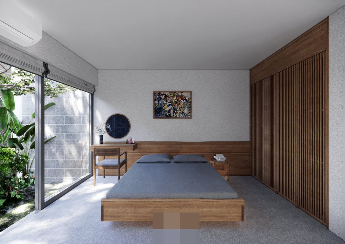 Phòng ngủ chính cho gia chủ yêu thiên nhiên, gió lùa mát mẻ. Tất cả các phòng ngủ đều đảm bảo có khí trời và ánh sáng tự nhiên nhằm tiết kiệm điện năng.