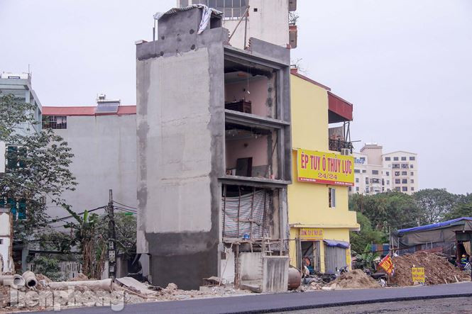 Bên cạnh đó, sau khi thu hồi và đền bù, một số ngôi nhà vẫn chưa kịp sửa lại tạo lên cảnh "nhếch nhác" trên con đường nghìn tỷ.