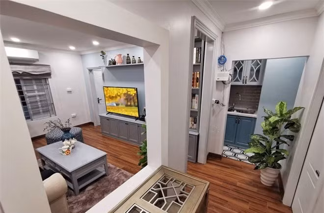 Sau 2 tháng cải tạo, căn tập thể cũ nát với diện tích 50 m2 đã được "hô biến" thành một căn hộ đẹp như mơ, khiến nhiều người phải ao ước với 2 phòng ngủ, 1 phòng khách, 1 phòng bếp, 1 phòng làm việc kiêm phòng thay đồ, ban công rộng cùng 2 nhà vệ sinh.