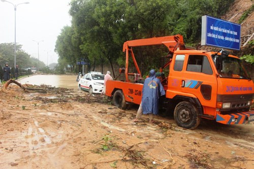 Suốt đêm 12/12 và sáng 13/12, mưa như trút nước xuống TP Nha Trang (Khánh Hòa). Đến rạng sáng 13/12, triền đồi thuộc khuôn viên Đại học Nha Trang bị sạt lở, hàng trăm mét khối đất đá, cây xanh đổ xuống đường Phạm Văn Đồng. Tại thời điểm này, một xe taxi biển số 79A 06540 và ô tô biển số 79A 04862 đang di chuyển thì bị đất đá vùi lấp. Rất may không gây thiệt hại về người.