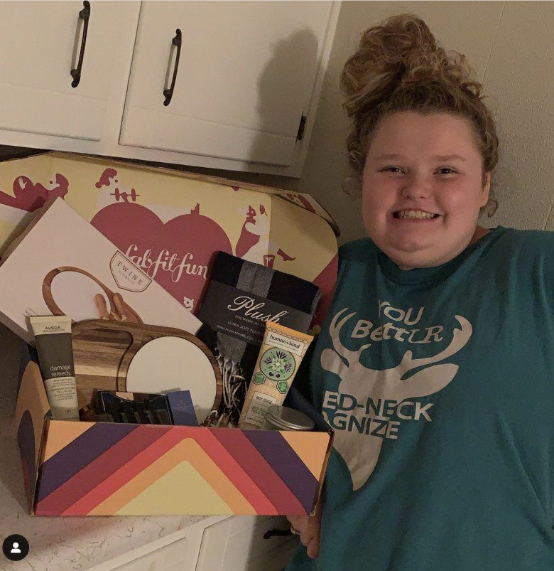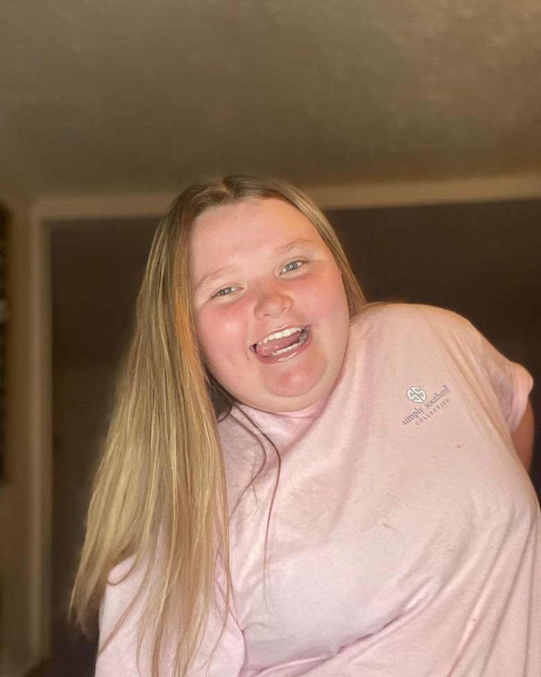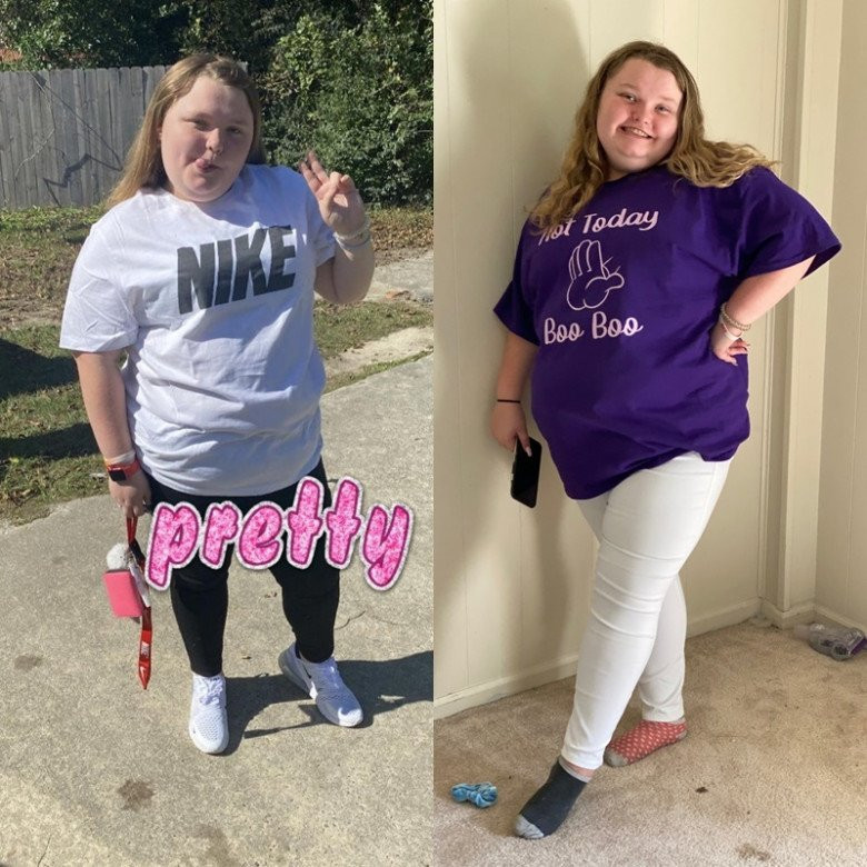 Alana Thompson nói với tờ People, cân nặng đỉnh điểm của cô từng lên tới 208kg. Cô thường xuyên xuất hiện đơn giản trong những bộ đồ thể thao xuề xòa. Trong khi đó, hàng mi lại dày như sâu róm, nặng rĩu mắt, trông Alana càng thêm già dặn.