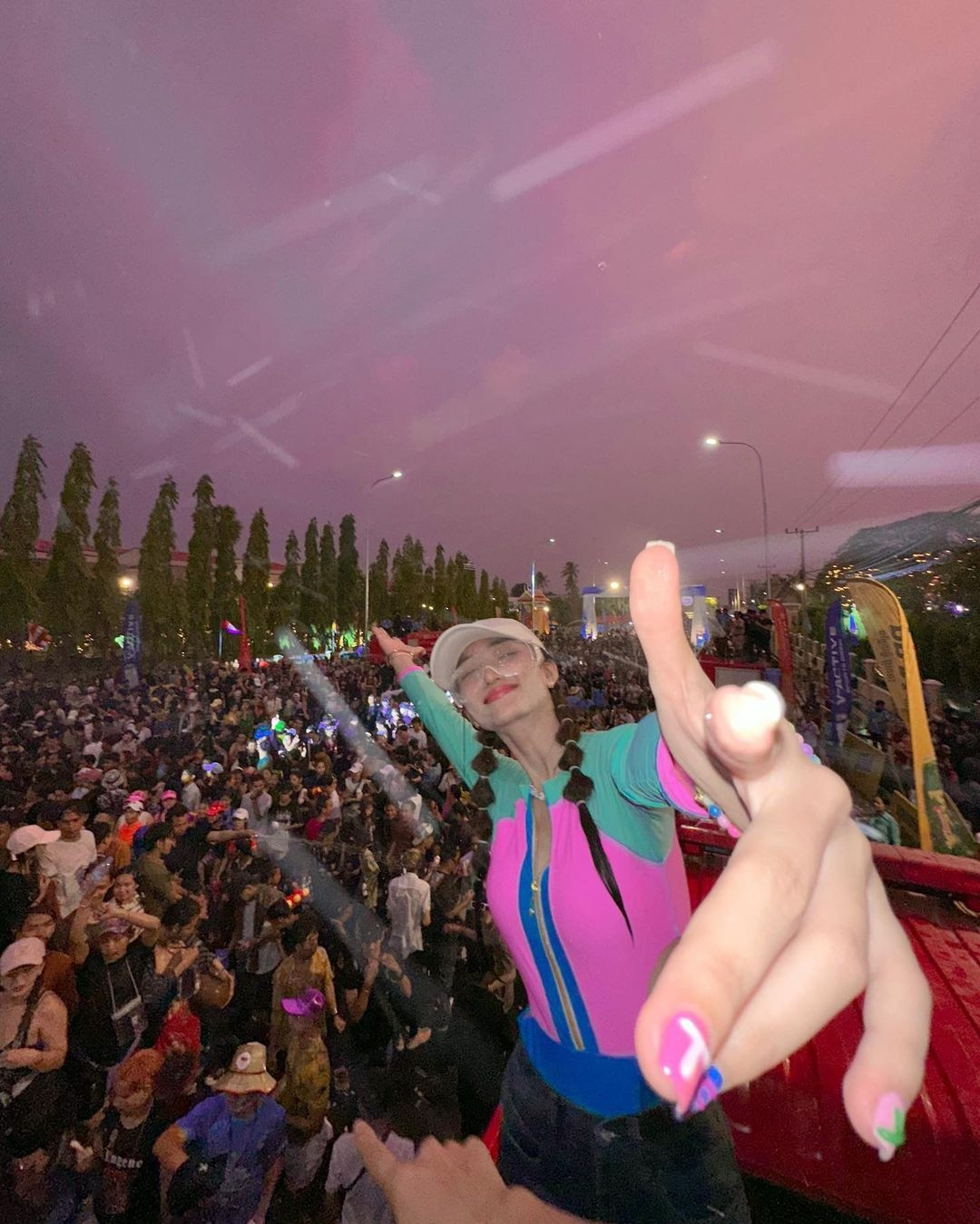 Hình ảnh của Saravady tại lễ hội Songkran ở Thái Lan hồi tháng 4. Hiện, người đẹp chủ yếu làm việc tại xứ Chùa vàng và tham gia các hoạt động thuộc hệ thống Miss Grand.