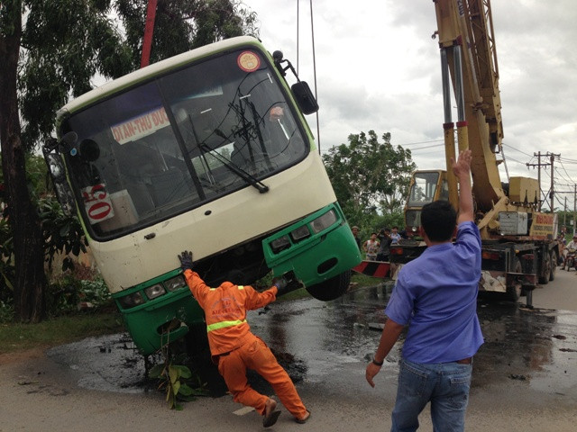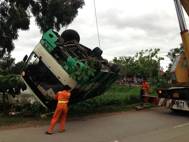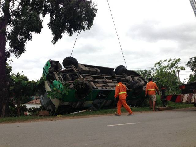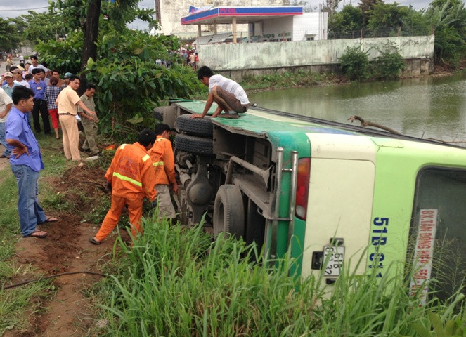 | Chiếc xe buýt mã số 611 BKS 51B-011.32 (chạy tuyến Dĩ An, Bình Dương –quận 9, TP.HCM) do tài xế Trần Đình Tấn điều khiển bất ngờ mất lái... |