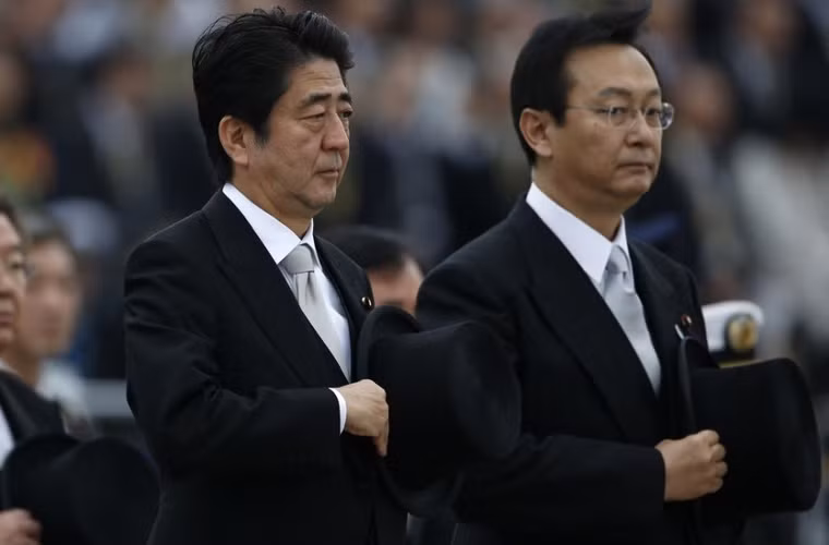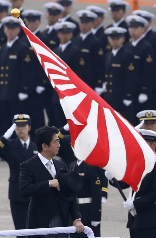 Việc mô hình F-35 xuất hiện trong lễ kỷ niệm 60 năm thành lập Lực lượng Phòng vệ trên không Nhật Bản (JASDF) cho thấy quyết tâm mua sắm F-35 của nước này nhằm đối phó với mối đe dọa từ Trung Quốc. Trong ảnh, Thủ tướng Shinzo Abe xuất hiện bên cạnh mô hình kích thước thật F-35.