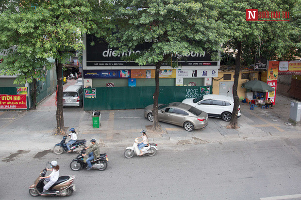 Toàn bộ cửa hàng trên phố Trần Duy Hưng đã được quây tôn.