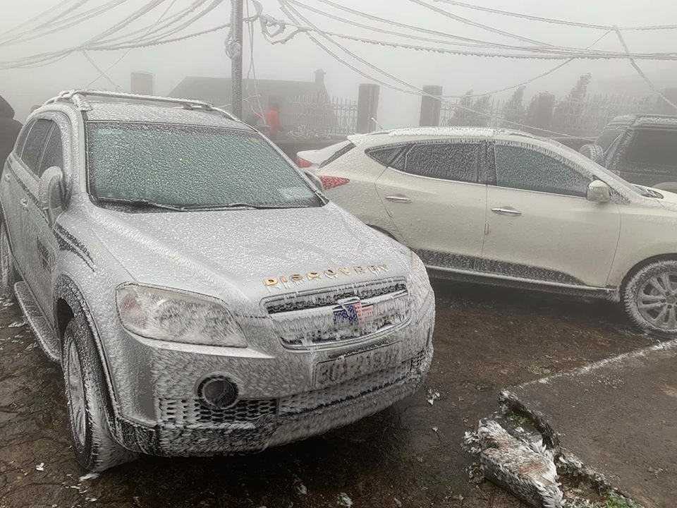 Xe ô tô của du khách bị băng giá bám vào toàn bộ xe