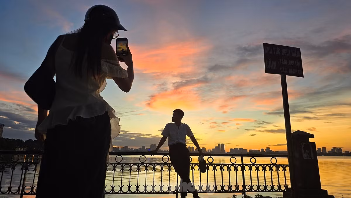 Hoàng hôn buông xuống đẹp ngây ngất khiến ai đi qua Hồ Tây cũng muốn nán lại để ghi lại những khoảnh khắc tuyệt đẹp cuối ngày.
