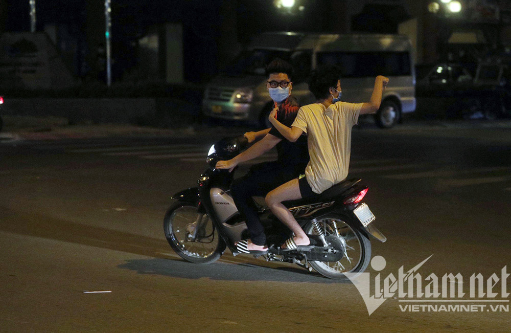 Theo ghi nhận của PV VietNamNet, tại những điểm tập trung đông người, ngoài không đảm bảo quy định 5K theo khuyến cáo của TP Hà Nội, nhiều nhóm thanh niên xuống đường trong đêm Tết Trung thu còn không đội cả mũ bảo hiểm. (Tổ công tác Y13/141 làm nhiệm vụ tại nút giao Kim Mã - Giang Văn Minh (Hà Nội)