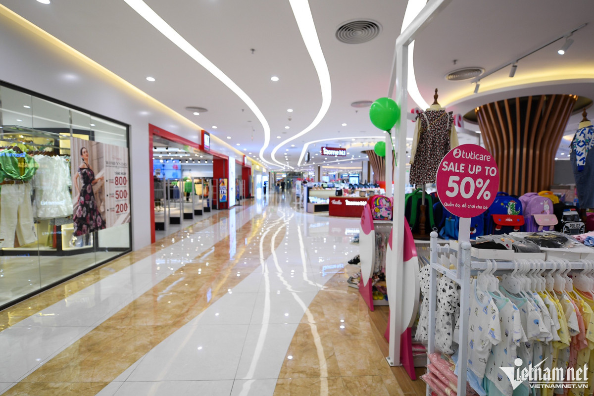 Trung tâm thương mại khác ở phố Tràng Tiền (quận Hoàn Kiếm) sáng chủ nhật (23/10) cũng trong cảnh tương tự. Trong khi đó, ngay bên ngoài là phố đi bộ hồ Gươm thường đông đúc du khách. Các dãy hành lang bên trong trung tâm thương mại này luôn vắng bóng người.