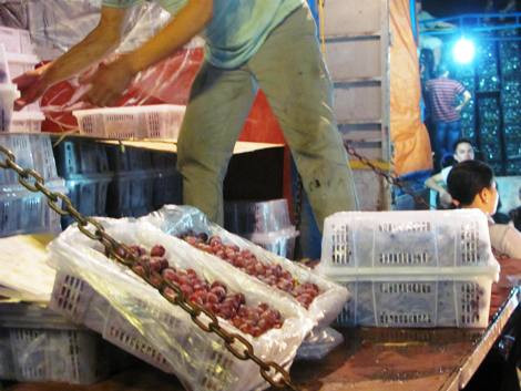 | Nho xanh TQ đội lốt nho Ninh Thuận đang làm mưa làm gió trên thị trường Hà Nội. Ảnh: Nguyên Đan. |