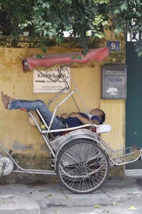 Không giường, không quạt, không yên tĩnh... những người lao động bán hàng rong, xe ôm, bốc vác… chập chờn giấc ngủ trưa vội trên phố Hà Nội.