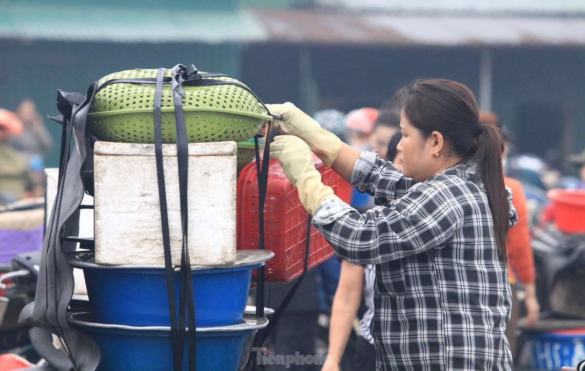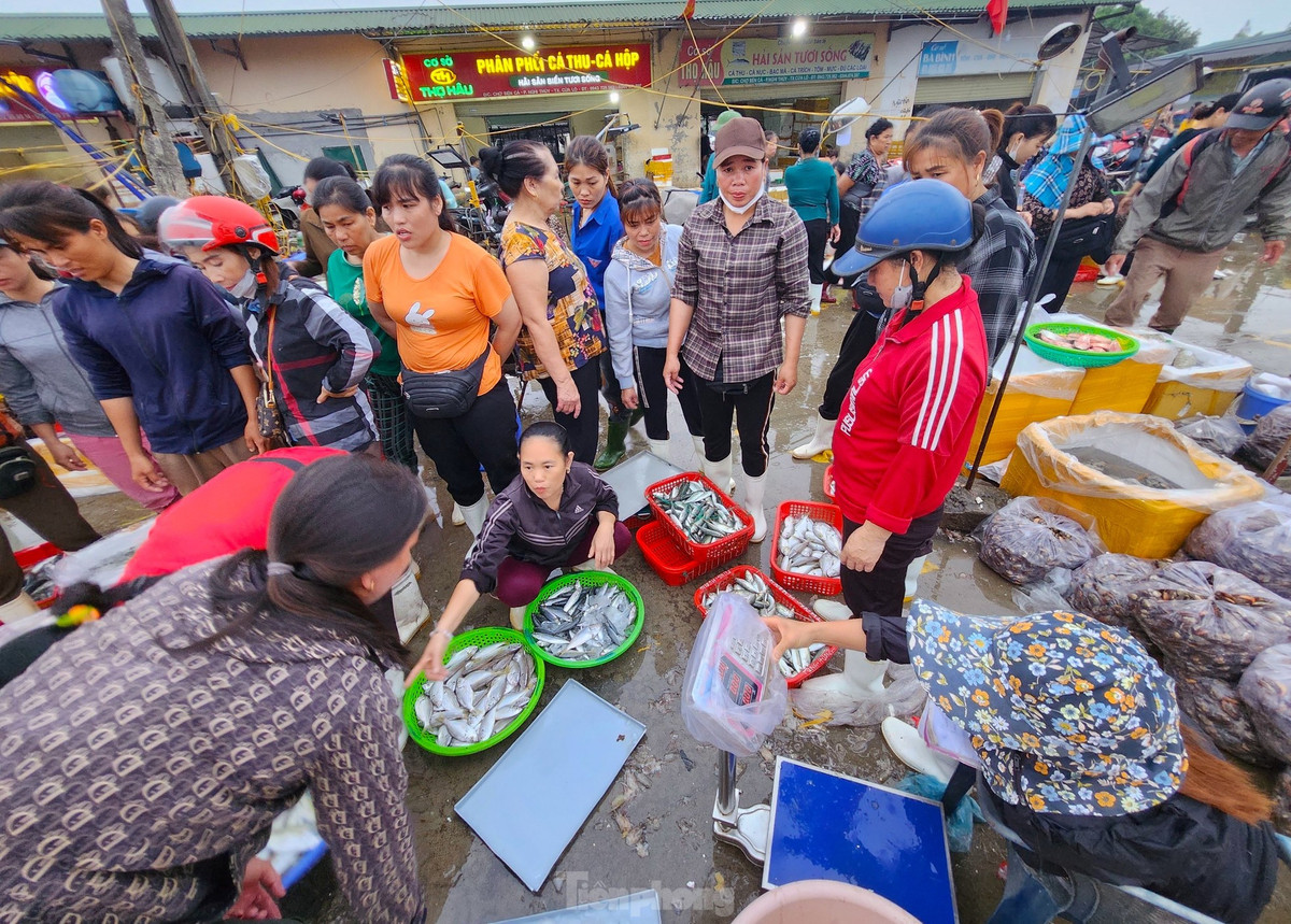 Trên bờ, các ngư dân, tiểu thương đã ngồi chờ sẵn. Mỗi khi tàu thuyền về, người dân lại lội ra để nhận những giỏ nhựa đầy tôm, cá...