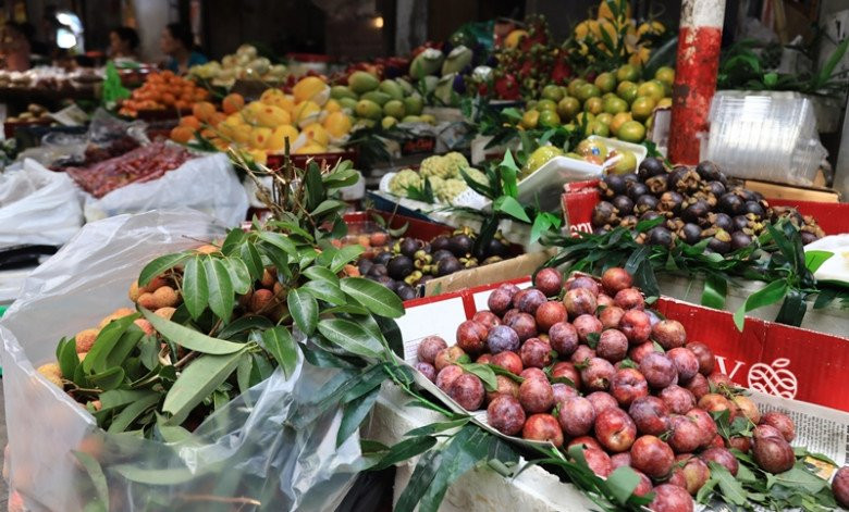 Những loại quả phục vụ riêng Tết Đoan Ngọ như vải, mận, cóc, dứa, chôm chôm, đào,… hay các thực phẩm khác là gạo nếp, rượu, bánh gio,… được bày bán khắp chợ. Từ cửa hàng cho tới người bán rong đều cung cấp những mặt hàng thiết yếu phục vụ người dân. Nhìn chung, mức gia đều tăng mạnh so với ngày thường.