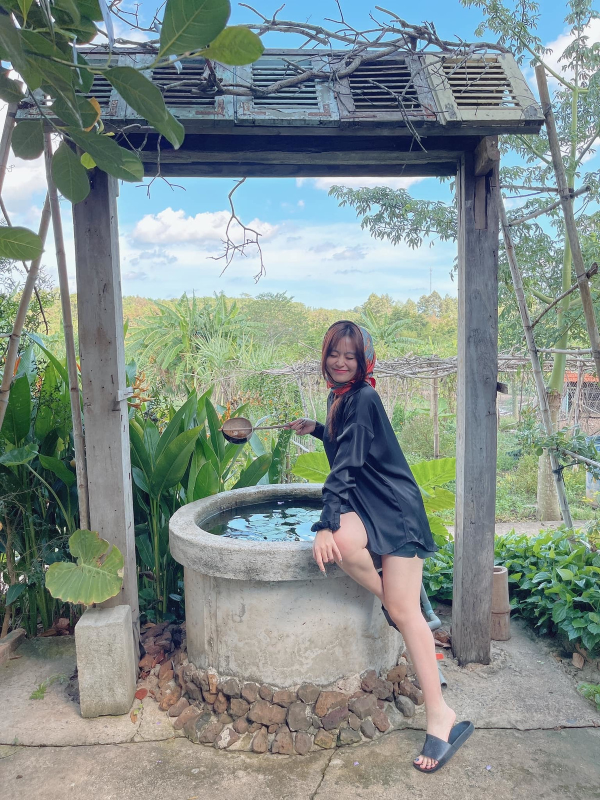 Hoàng Thùy Linh nhí nhảnh ở quê.