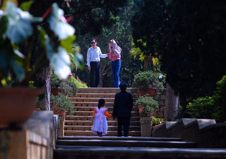 Những bậc thang đá ngoài trời này tạo nên nét hài hòa, phù hợp với thiên nhiên và địa hình Đà Lạt.