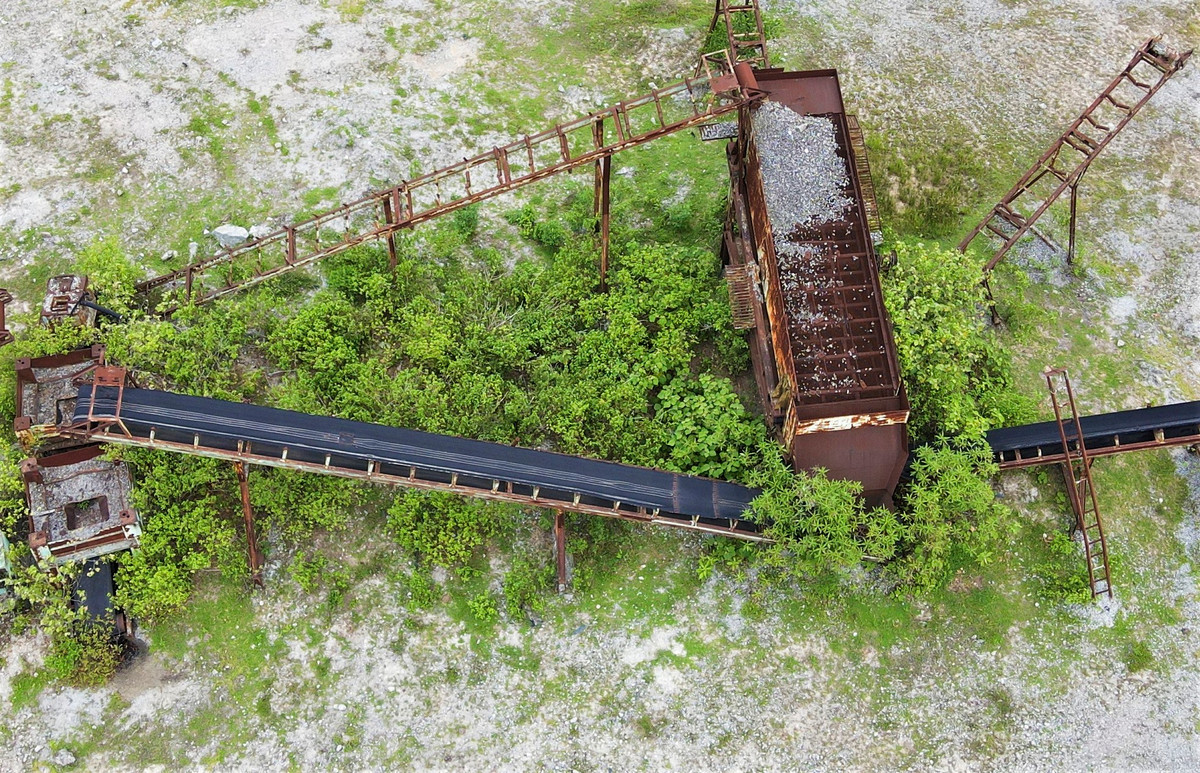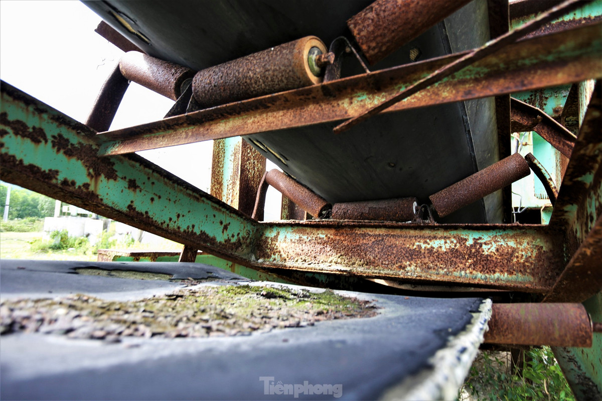 Máy móc, băng chuyền đá, sỏi hư hỏng, hoen gỉ bị bỏ lại công trường.