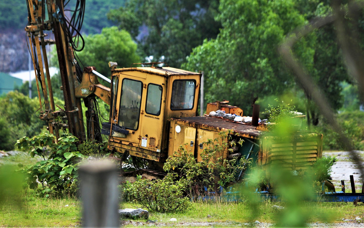 Theo thời gian, những cỗ máy khai thác khoáng sản hư hỏng trở thành đống sắt vụn, cỏ dại mọc um tùm xung quanh.