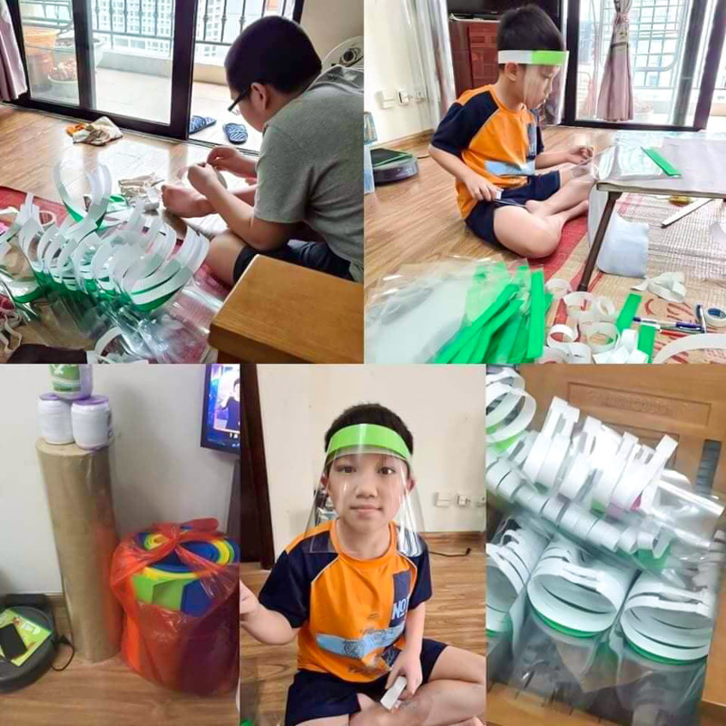 Đây là khoảng thời gian các em học trực tuyến và thực hiện giãn cách xã hội, việc tự làm những chiếc mặt nạ mica gửi tặng các Y Bác sĩ là việc khiến các em hứng khởi và nhiệt tình tham gia.