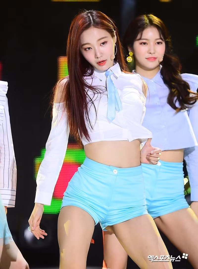 Thời gian còn hoạt động với tư cách thành viên GFriend, Eunha được khen thân hình đồng hồ cát với vòng ba và bắp đùi to, săn chắc. Cô tận dụng những mẫu quần ngắn để khoe lợi thế hình thể. Không ít lần, nữ thần tượng diện đồ quá ngắn để lộ khoảnh khắc nhạy cảm khi thực hiện vũ đạo. Ảnh: Twitter.