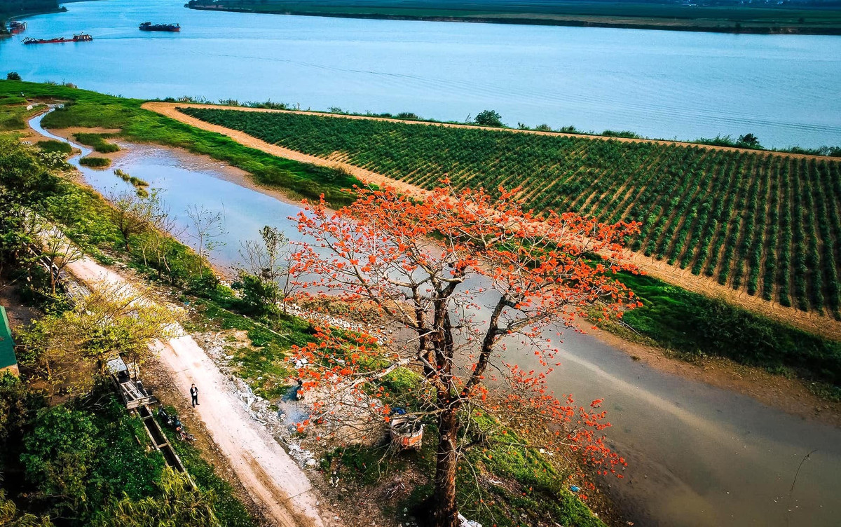 Những thiếu nữ xinh xắn tranh thủ chụp hình lưu niệm bên bông hoa gạo tháng 3. (Ảnh: Rạng Đông)