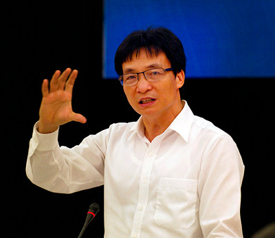 Tuy nhiên, ông cũng rất nghiêm nghị khi phát biểu, trả lời chất vấn, báo chí. Ảnh: Thanh Niên.