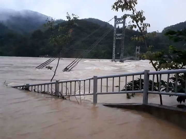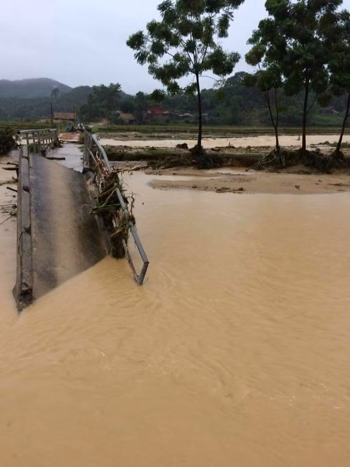 Nước sông dâng cao còn khiến 1 cầu treo đoạn qua bản Mạ, xã Xuân Cẩm bị lũ cuốn trôi. Nhiều thôn, xã bị cô lập do đường sá bị sạt lở, ngập nước.